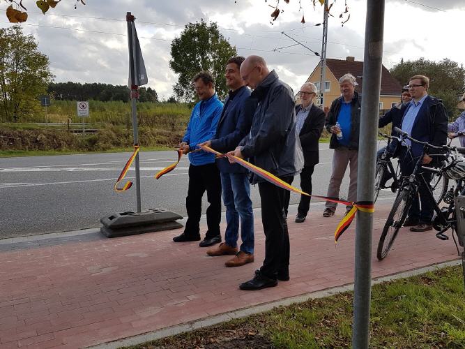 Endlich freie Fahrt. Am Freitag, den 13.10.2017 wurde der rund 3,5 km lange Radweg entlang der Bundesstrasse105 von Infrastrukturminister Christian Pegel, Landrat Sebastian Constien und Rostocks Amtsleiter für Verkehrsanlagen Heiko Tiburtius im Beisein mehrerer Anwohner aus Gelbensande feierlich eröffnet. Der Radweg ist wichtig als Schulweg, aber auch für die touristische Erschliesung. Er ist Teil des Gesamtradweges von Rostock nach Altheide. Der Lückenschluss nach Altheide soll bis zum Jahre 2020 erfolgen.